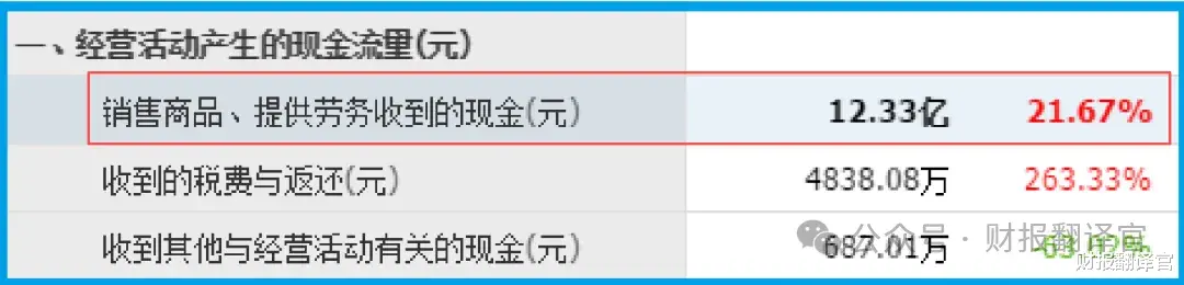 果然,一个关键线索出现了:公司销售商品收到的现金总额高达12.33亿元,同比增长21.67%,规模与营收相当。