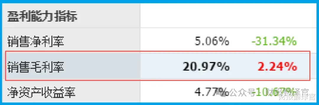 财报显示,公司的销售净利率仅为5.06%,同比大幅下降了31.34%。