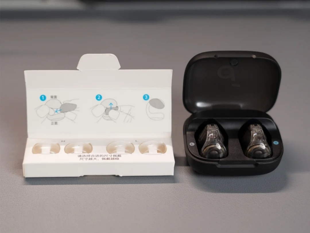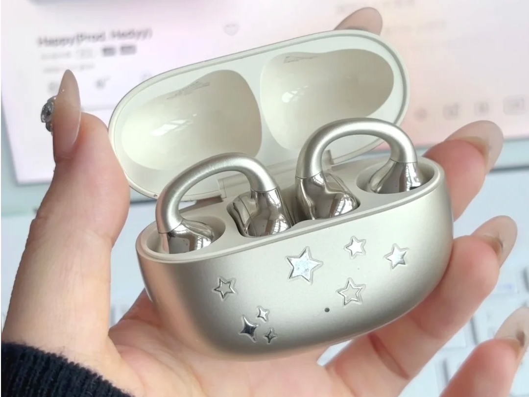 佩戴舒适度是真在线!重量上,单耳才 5.9 克,戴在耳朵上没啥存在感,就算戴大半天,耳朵也不会觉得累。它的耳圈是自适应开放式设计,还挺实用的,不管啥耳型基本都能贴合得不错。考虑到耳朵小的朋友,它还额外配了两种大小的耳贴,贴上之后耳机戴得更稳当,整体佩戴体验确实舒服。