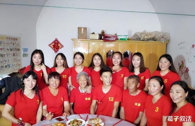在这喜庆的日子里,最吸引眼球的并非新郎新娘,而是11位身着大红T恤的女子。她们在镜头前大方地打着招呼,自曝身份,原来是新郎高浩珍的11位亲姐姐。