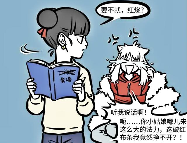 哪咤居然还能悠闲地询问九月要以何种方式变成一道菜,这不经过她的允许,就擅自做主的举动,怎么看怎么像个大老板。我们能看到,九月的尾巴在颤抖,很明显,她很害怕,因为她虽然是九尾妖狐,但却无法解开那块红布。