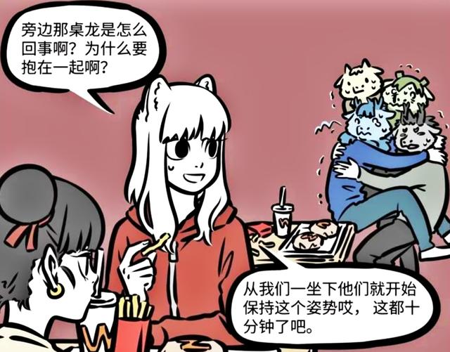 小哪咤想要报答九月,便邀请九月共进晚餐。九月看到一桌子的食客莫名其妙地互相拥抱,便问小哪咤为何如此。
