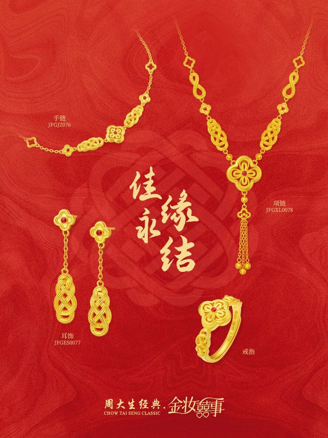 无论是订婚之约、婚礼之盟,还是周年之庆,“金妆囍事”系列皆可成为爱情的永恒信物,铭刻两人之间最深切的情感联结,让传统婚俗文化在现代时光中焕发新生。