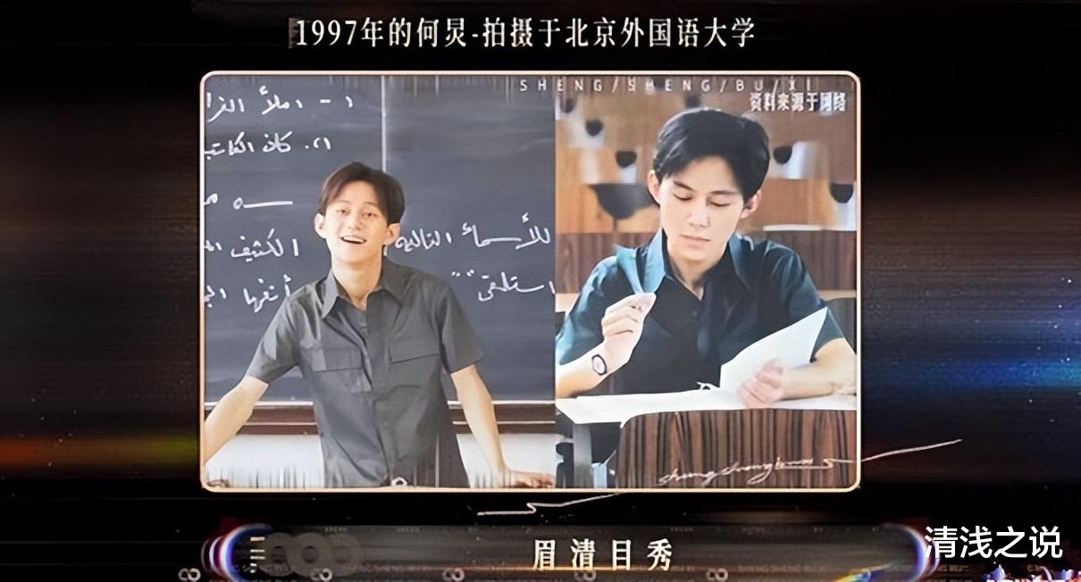 庾澄庆看着一直在看热闹的何炅,有针对性地说:“台上明明三个人,但却只放了两个人照片,不能假公济私。”显然,他这是在点何炅,喊话节目组也得放放何炅的古早照片。节目组倒也不偏私,很快就放出1997年何炅在北京外国语学院当老师的照片。那时的何炅真一个眉清目秀,从台上的庾澄庆到后台观看的嘉宾都夸何炅太帅气了。