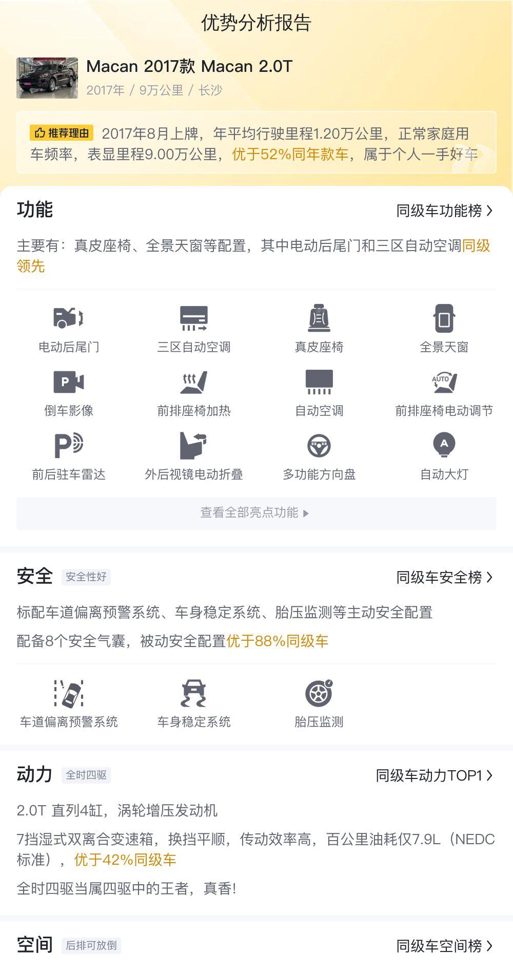 在如今的汽车市场,价格、品牌、性能、配置、车况、用车成本等等,都是消费者需要权衡的因素。而二手车市场更是充满了变数,需要更加谨慎。这篇文章的目的,并非劝你购买这辆Macan,而是希望通过对这辆车的分析,为你提供一些购车思路,帮助你做出更理性的选择。