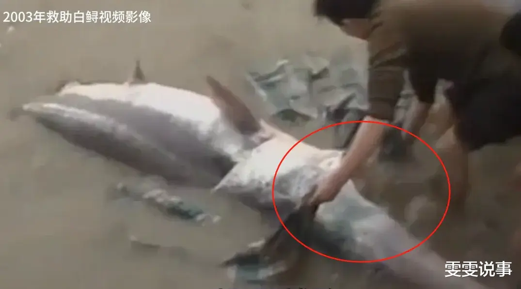 下图是2003年出现在我们视野当中的最后一条白鲟,当时它的身影出现在四川宜宾,被人发现后科研人员紧急对其进行了救助,并给它安装了定位声呐后放流。