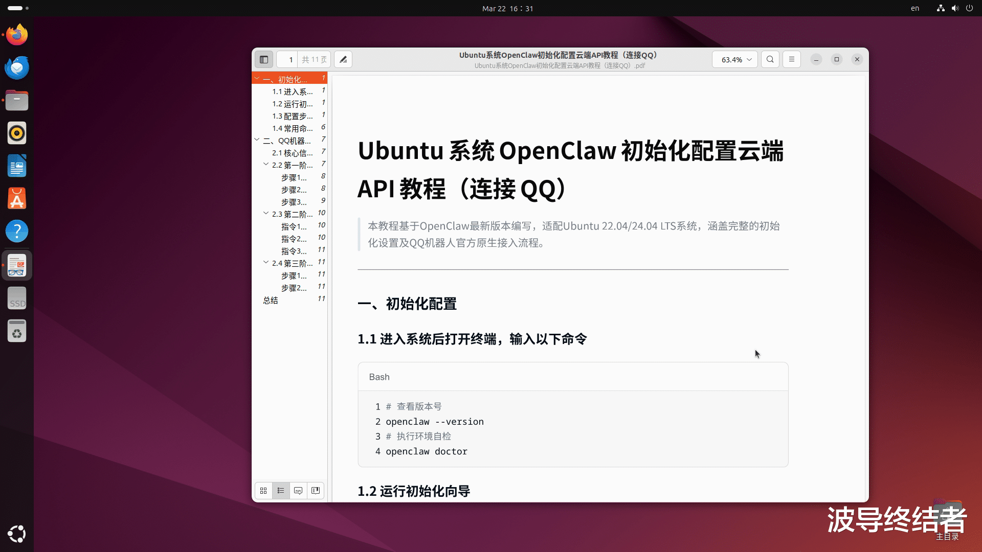 ubuntu开机初始化的过程就不贴出来了,与本次主题无关。在home文件夹下会看到说明文档,从OpenClaw初始化,到配置云端API,再到连接QQ机器人都非常详细。我觉得如果照着做还弄不懂的,可能也不适合玩龙虾了。倒是我要在其之上,加配本地部署,就还是得折腾一番。