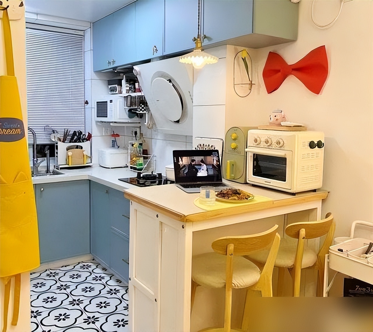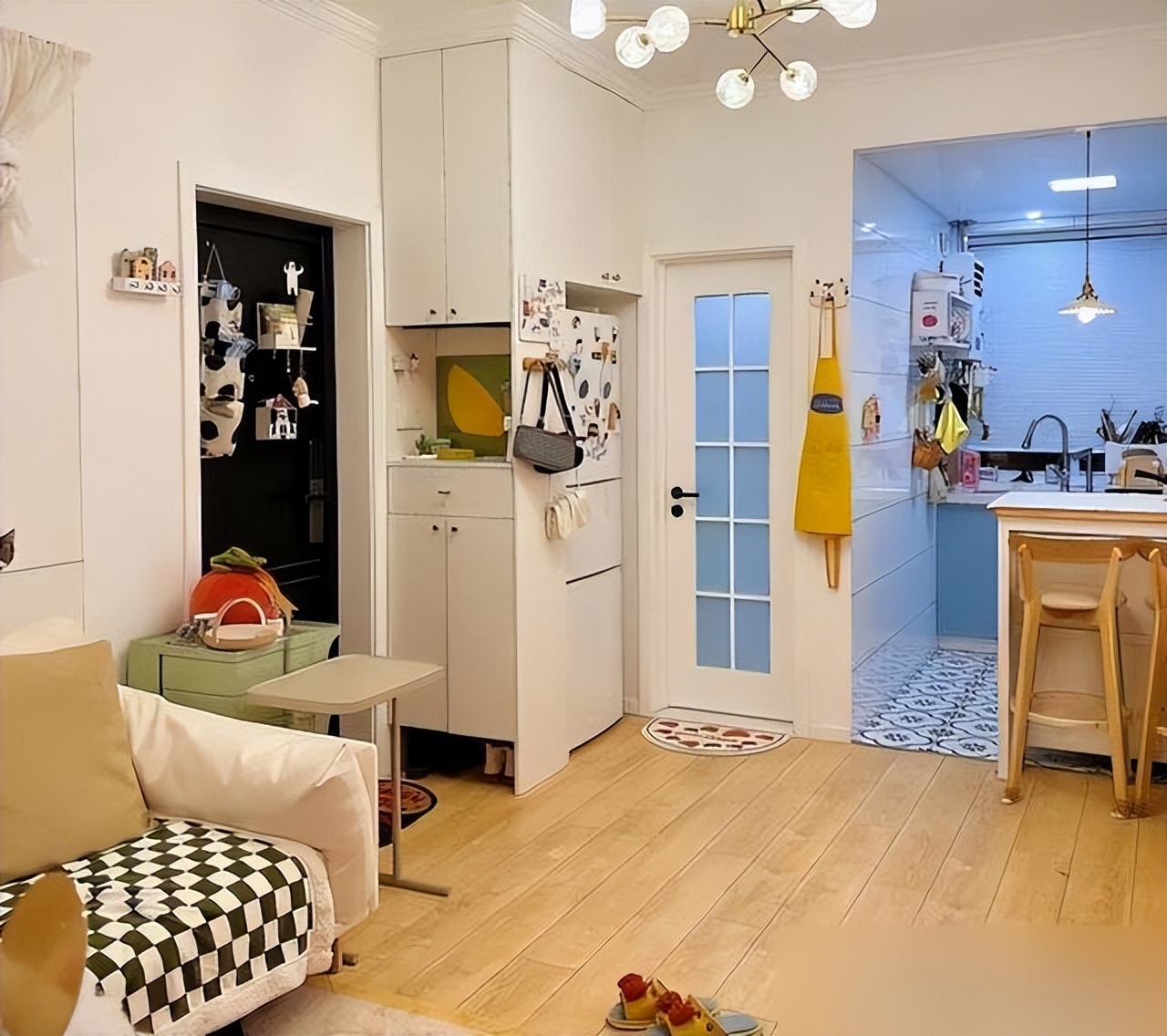 先让师傅把墙铲到红砖,防潮漆两遍打底,再刷一层奶油色乳胶漆,灯光一打像开了美颜滤镜;地板用锁扣式木纹板,一天铺完没甲醛味;厨房拆成L形台面,转角塞下拉篮锅碗全隐身;冰箱贴门口侧边柜里散热孔提前开好煮饭拿菜一步转身。