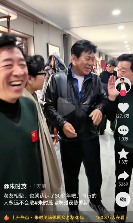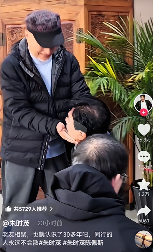 两人虽然出生年月相近,但同框画面却颇具割裂感如两代人一般,尤其穿着低调的陈佩斯,先是摸了摸朱时茂的头发而后又顺势摸脸颊,怎么看剧情都像是老大哥多年后与幺弟重逢。
