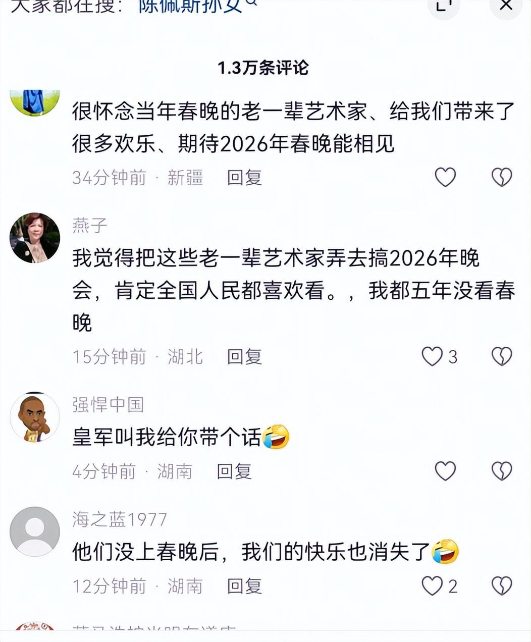 难怪有1.3万粉丝在评论区留言,请求立刻封锁现场,将这些人全部抓起来去排练2026年春晚,哪怕是老段子、粗糙的服化道,只要能看到他们亮相就行!