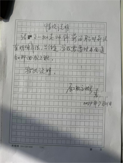 (情况说明,张老师提供)