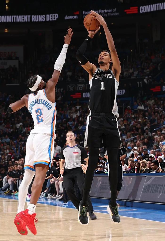 马刺:文班亚马31分13篮板,福克斯26分7篮板,巴恩斯7分6篮板,凯尔登19分8篮板,尚帕尼36分6篮板,其中命中11记3分,在文班亚马伤退情况下,临危救主,成为本场比赛最大的获胜功臣。