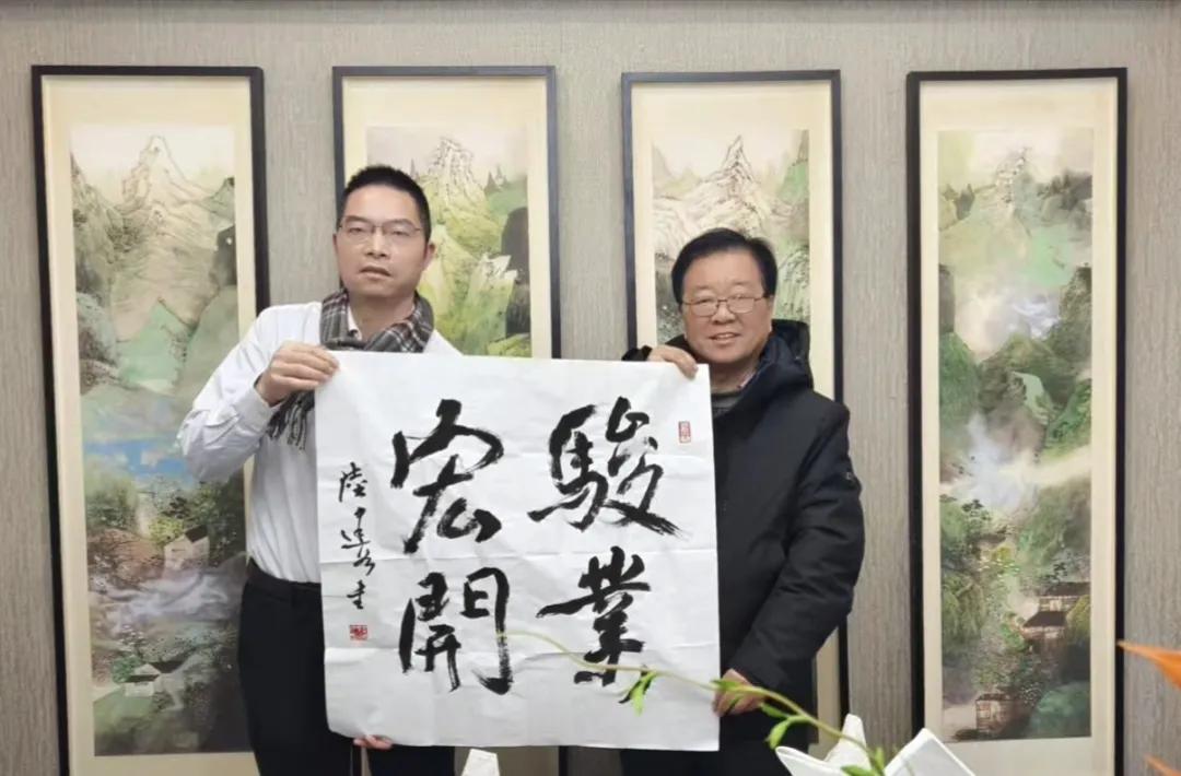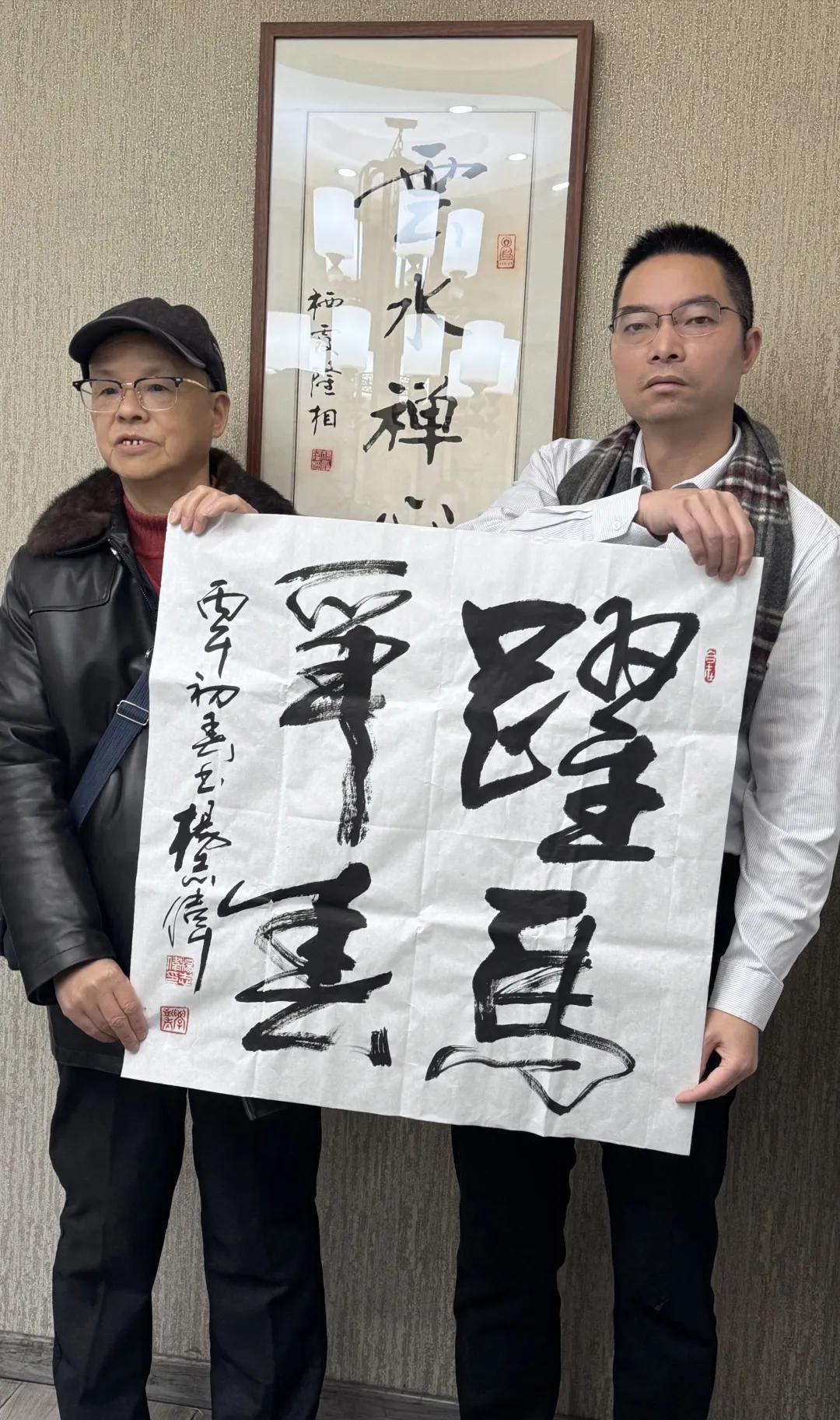 杨志伟、陆建如、黄志毅、武强林四位老师现场分别向朱鹏源馈赠了其书画作品与新年台历。