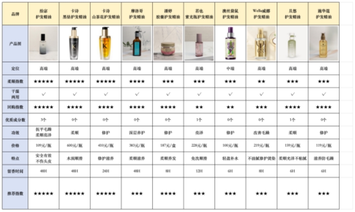 为了便于大家查看这几款护发精油的基础参数,我制作了简单的表格: