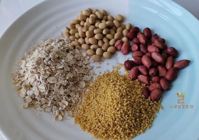 1、在黄豆的基础之上多搭配几样杂粮,花生,小米,燕麦,每样取少量即可。