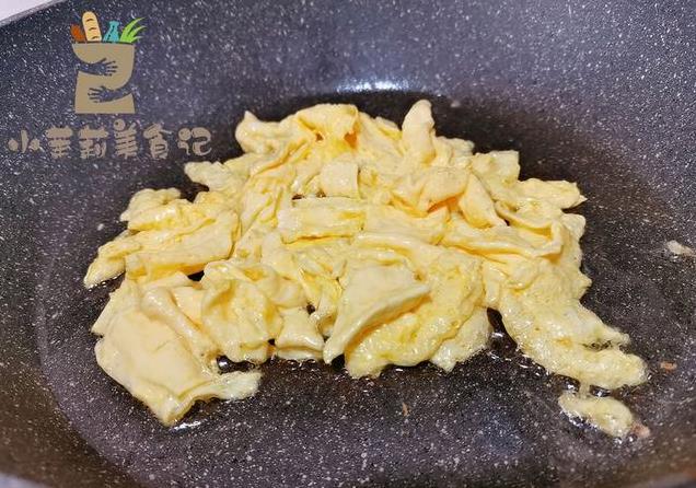 2、先来炒鸡蛋,喜欢嫩一些的,炒的时候快一点,凝固之后立即盛出。