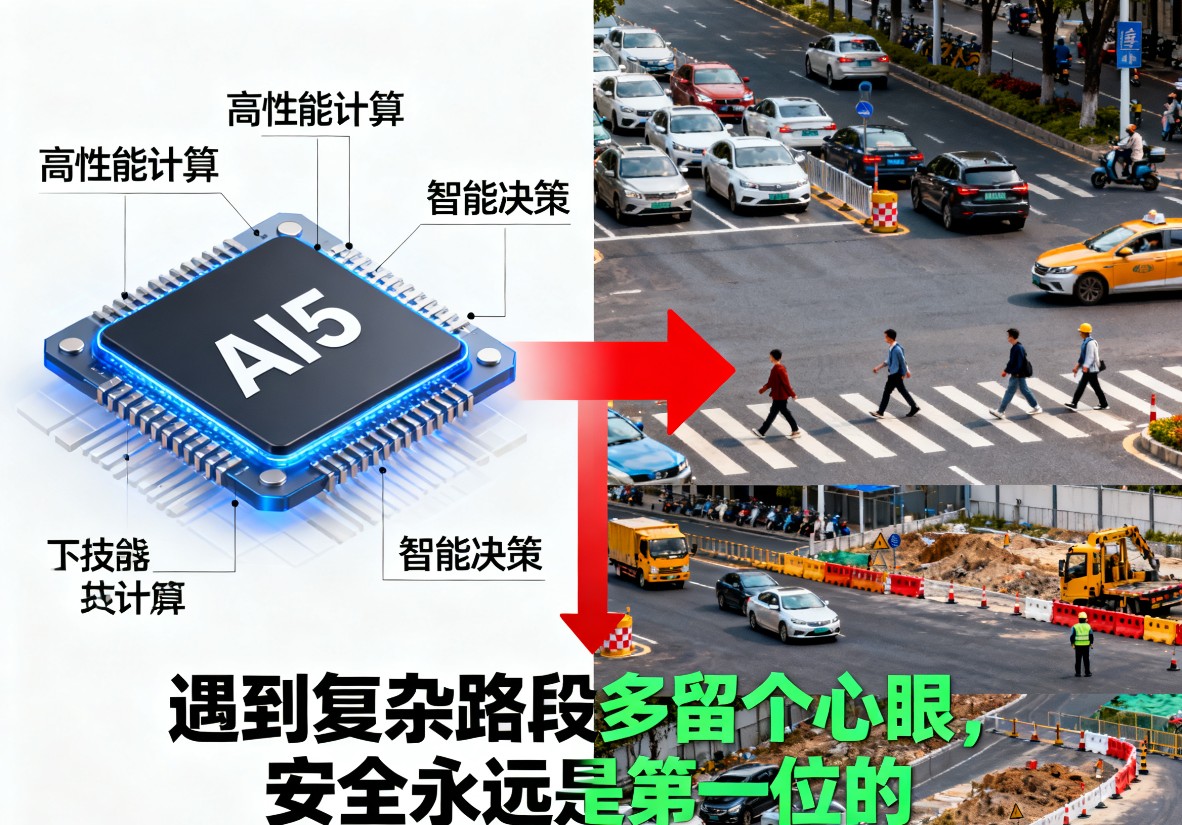 第一个观点必须说,技术接地气才有用,算力升级得解决日常麻烦。前阵子小区张阿姨坐自动驾驶网约车,下雨天路口有积水,车子犹豫半天不敢过,后面堵了一串车。现在AI5芯片算力是前代的5倍,能更快处理雨天模糊路况,以后这种尴尬场景说不定就少了,出门打车更顺畅。