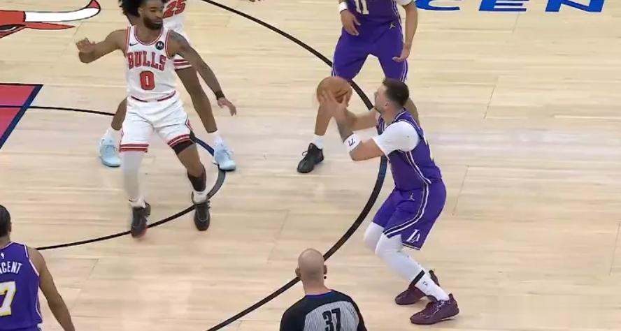 易边再战,公牛连续投进3记三分,下半场11-5追至7分打停湖人。科比-怀特连中3记三分,公牛下半场6记三分追至仅差湖人1分。东契奇反击中送出背后妙传,八村垒接球三分投进湖人打出8-0,重新领先到9分。八村垒连续三分投进,目前7中6、三分4中3得到15分。东契奇三分连中单节砍下20分,湖人领先15分进入末节。