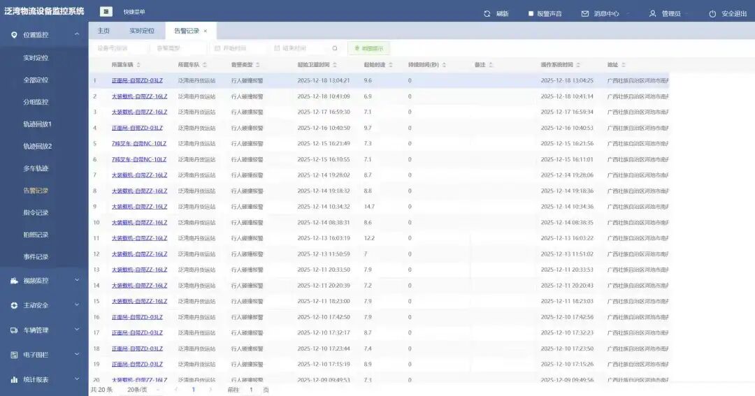 该子系统平台同步支持车辆轨迹追溯与历史视频回放功能,为事故事件调查提供完整、可信的数据与影像佐证,显著增强安全管理的可追溯性与闭环处理能力,推动港口流机作业安全从“事后追责”向“全程可控”的系统化治理模式演进。