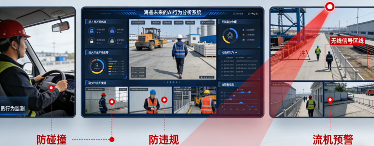 海睿未来的系统不仅能监测驾驶员行为,更能通过AI预警系统与AI行为分析系统的智能联动,将安全防控的触角延伸至作业现场。