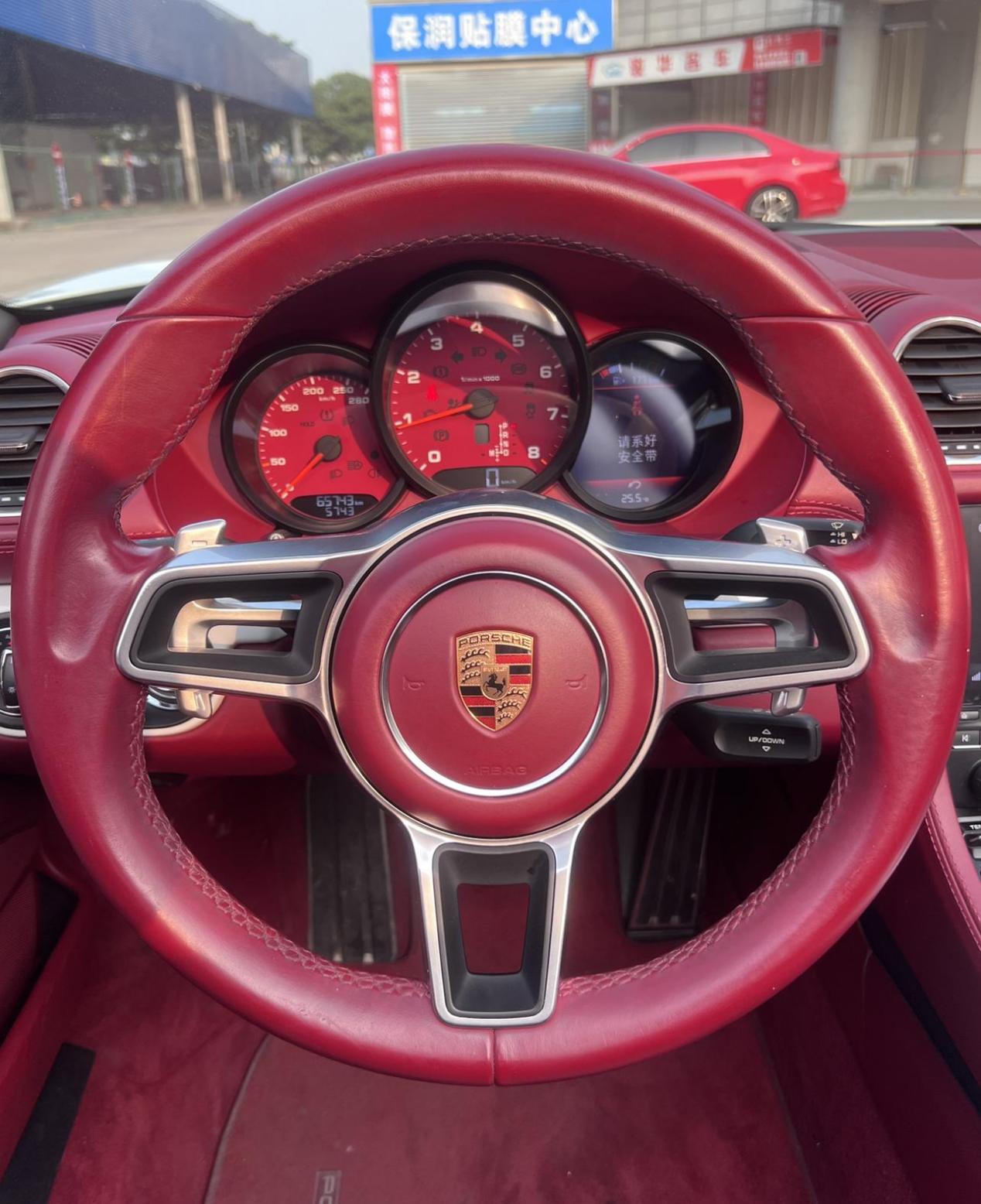 这辆718 Boxster是2020款的,搭载的是2.0T涡轮增压发动机,最大功率250kW,最大扭矩310N·m,匹配7速双离合变速箱。这套动力组合虽然不及4.0L自吸的718 Spyder和Cayman GT4那么狂暴,但也足够让你体验一把速度与激情了。百公里加速5.6秒,推背感还是很强的。而且,2.0T的发动机也更省油,更适合日常驾驶。