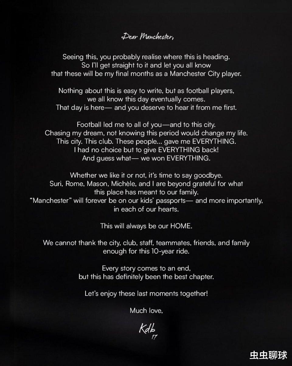 那么问题来了,33岁的德布劳内下一站会在哪里呢?会到沙超拿着超级的年薪养老,还是会跑去迈阿密国际这家”巴萨老人院“,找球王梅西聊一聊快乐足球的味道呢,无论在哪里,以丁丁的实力而言,肯定还是能”横冲直撞“的存在,你们说呢?欢迎大家到评论区来聊天啦!