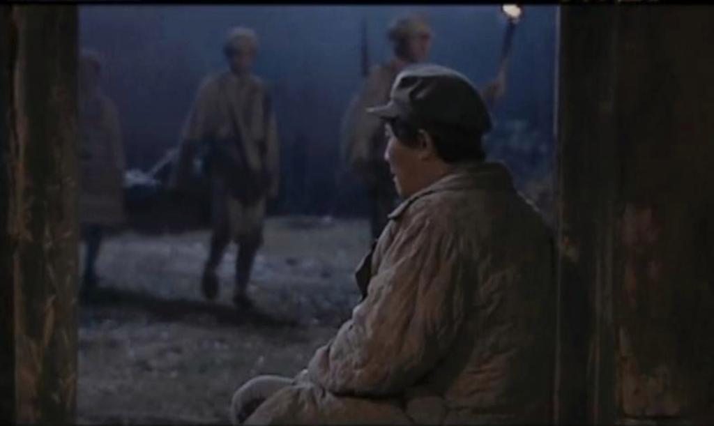 唐国强的表演具象化,背景里天色昏暗,他倚在门口默默抽烟,目光呆滞、形孤影只,此时一个侧面特写精准表现出他内心的无助和失魂落魄。