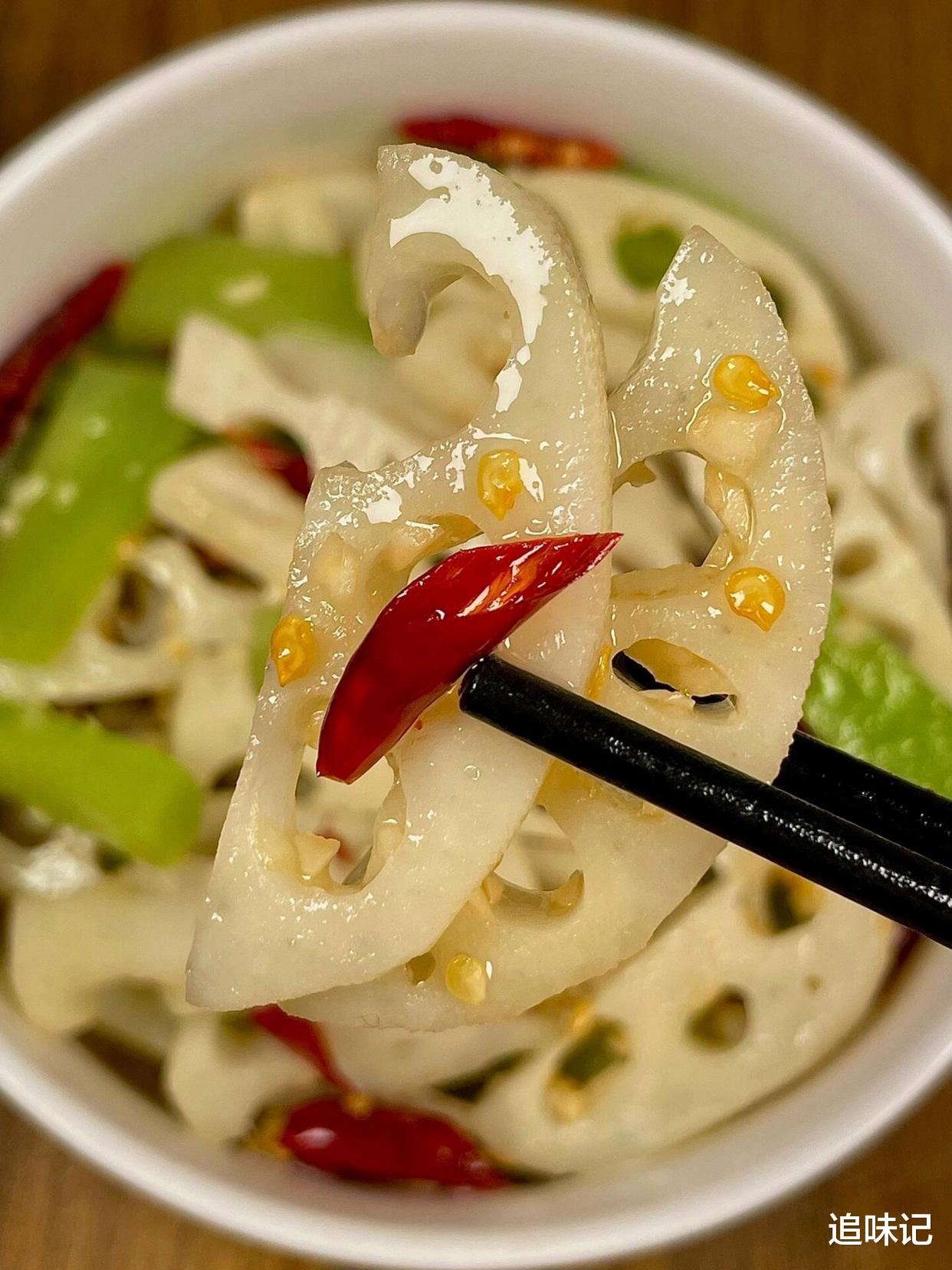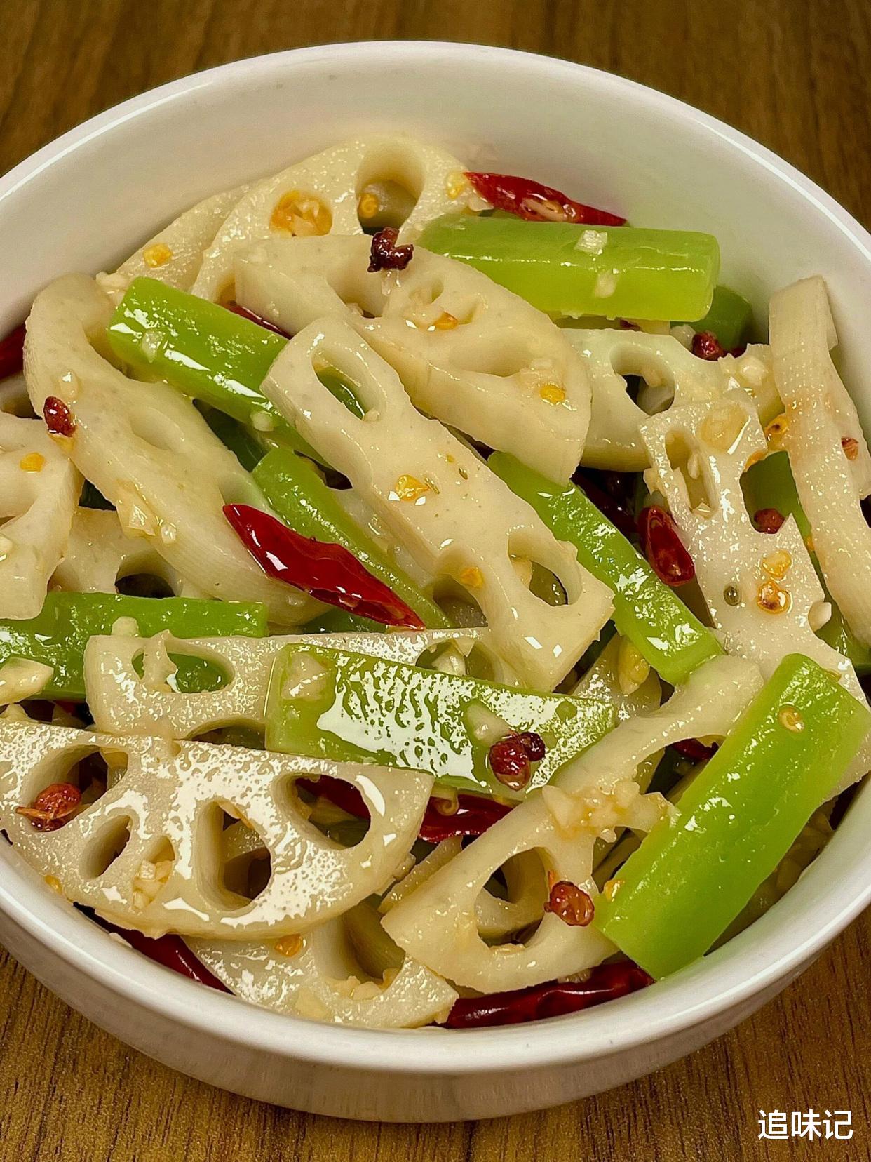 藕片脆爽,莴笋清新,酱汁酸甜微辣,蒜香和花椒的香味交织在一起,清爽开胃,是一道非常解腻的小菜。