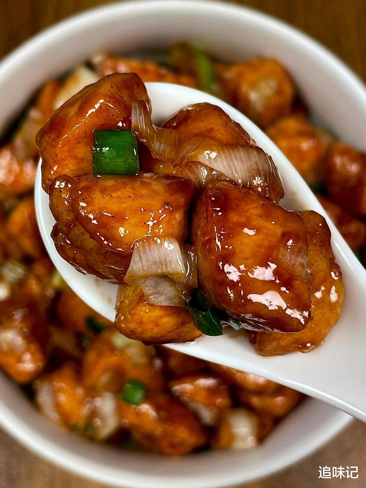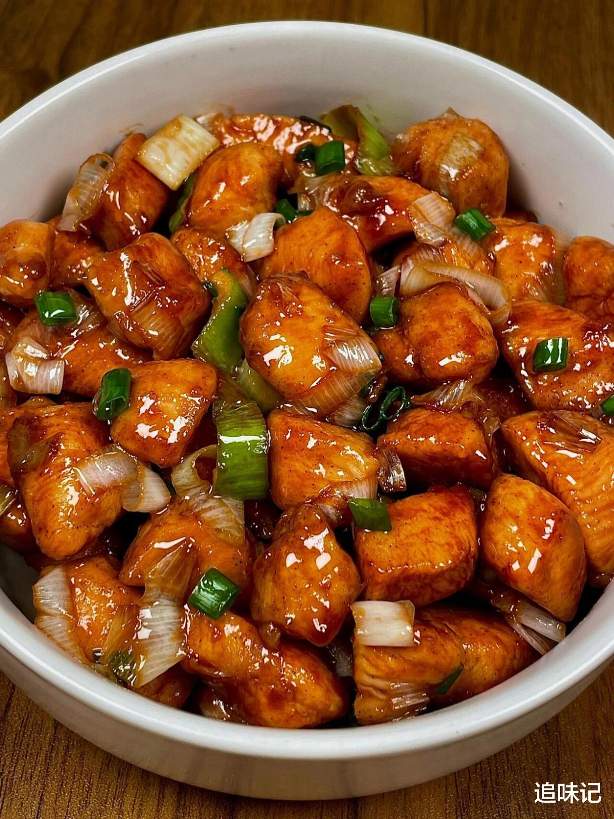 鸡胸肉煎得金黄,裹着浓郁的酱汁,大葱的香味扑鼻而来,口感鲜嫩多汁,每一口都带着葱香和鸡肉的鲜美。