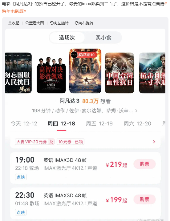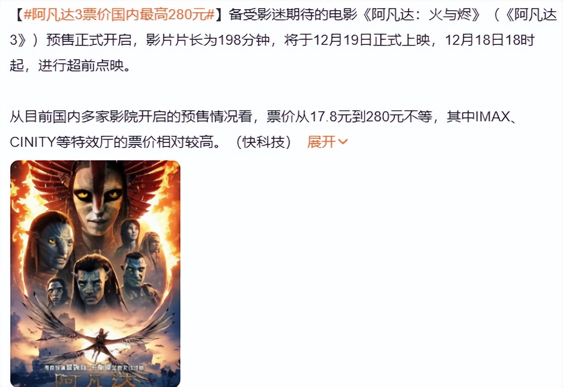 尽管我们都猜到了《阿凡达3》这样一部大片,票价肯定不能和普通影片一样,但也没想到票价高得这么吓人。