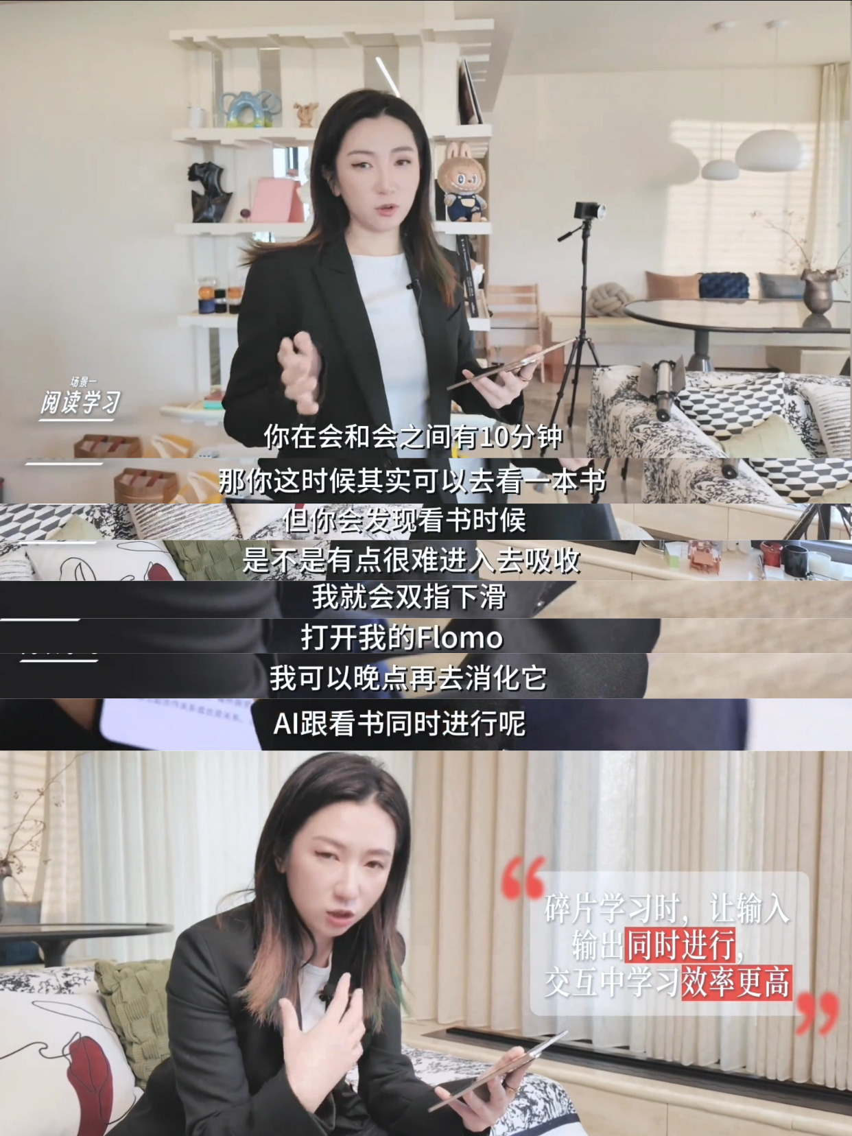 下来便是选择适合自己的工具,为了更高效、更爽的在工作与学习之间灵活切换,她换了OPPO新出的折叠机Find N6,像是会议之间十分钟的空闲阅读时机,纸质书可能无法完全吸收,但用Find N6可以双指下滑打开 Flomo 进行暂存,后续还能用AI辅助进行思考理解,用她的原话:碎片学习时,让输入与输出同时进行,交互中学习效率更高,而不是为了看书而看书...