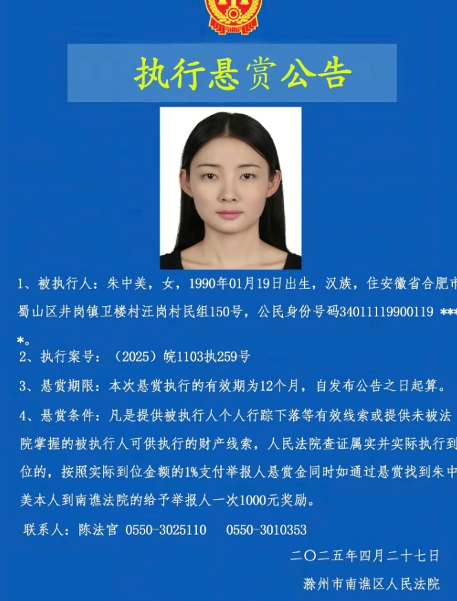 事情是这样,这位女子谎称不久于人世,名下还有三套房产,想留给现任男友,但是需要手续费等7万元,后来男友发现被骗就告到法院,法院公平公正判决,但是这位女子不仅不执行,还消失了,所以安徽法院才全网找人,并将这种失信人员列入黑名单。首先我觉得这个女子有点傻,用假死小伎俩来骗钱,难道真的就找不到了吗。其次,法律意识太淡薄,既然暴露后法院也裁定了,竟然还无视法律,这可就触及红线了,就单单失信人员这一项,以后很多方面都会受到影响,她会为了无知买单的。#“90后”美女朱中美被悬赏#