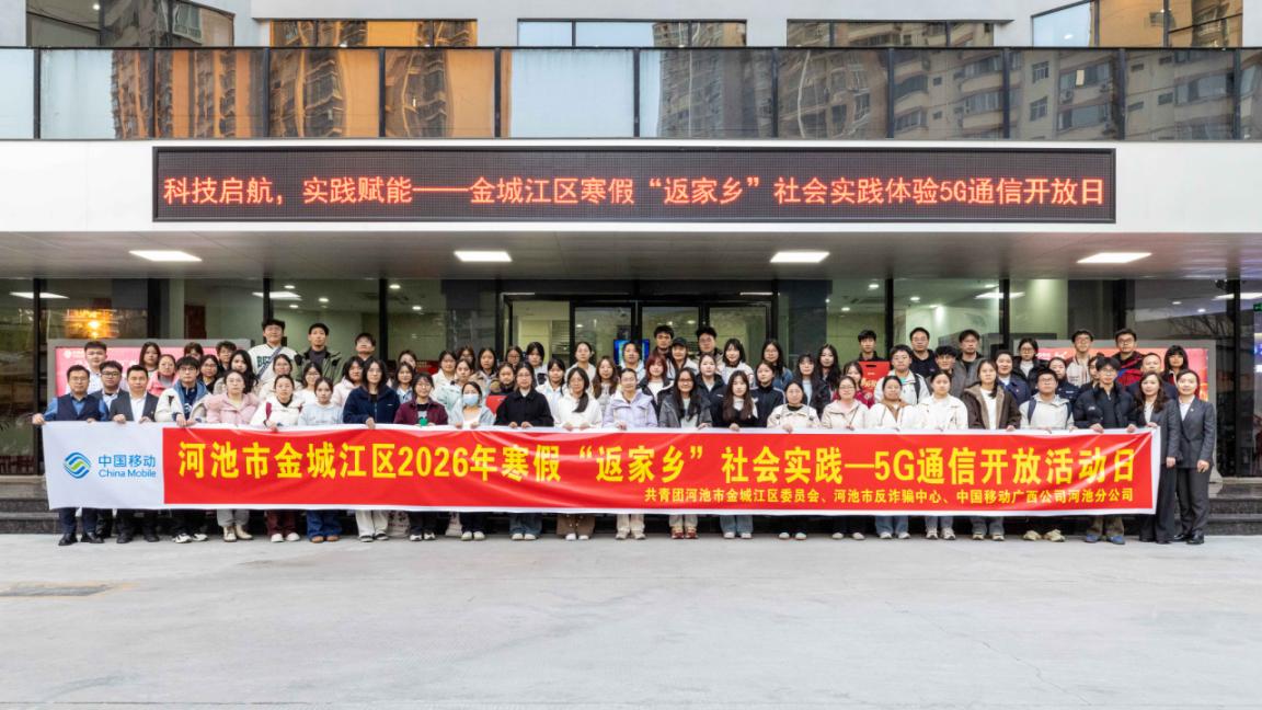 2月6日,中国移动河池分公司联合共青团河池市金城江区委员会,开展“科技启航,实践赋能”返乡大学生实践活动,80名学子沉浸式体验5G通信科技,解锁通信信息新技能。此次活动旨在拓宽青年科技视野,激发其返乡就业创业、建设家乡的热情。