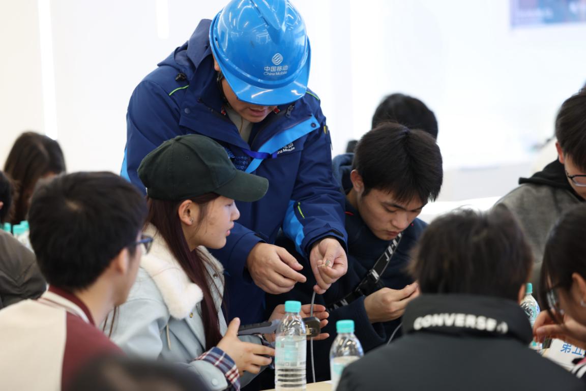 活动设置5G数据机房探秘、智家产品体验、通信实操训练、青年座谈会四大环节,让学子在“看、学、练、悟”中提升综合素养。工程师带领学子走进 5G 数据机房,讲解设备原理与 5G 核心特性,解读其在多领域的应用,展现数字基建对地方发展的重要性;智家产品体验区,学子亲身体验智能安防、云电脑等产品,感受 5G 带来的生活便利;实操训练中,技术人员指导网线制作、设备调试等操作,助力学子掌握基础通信技能。