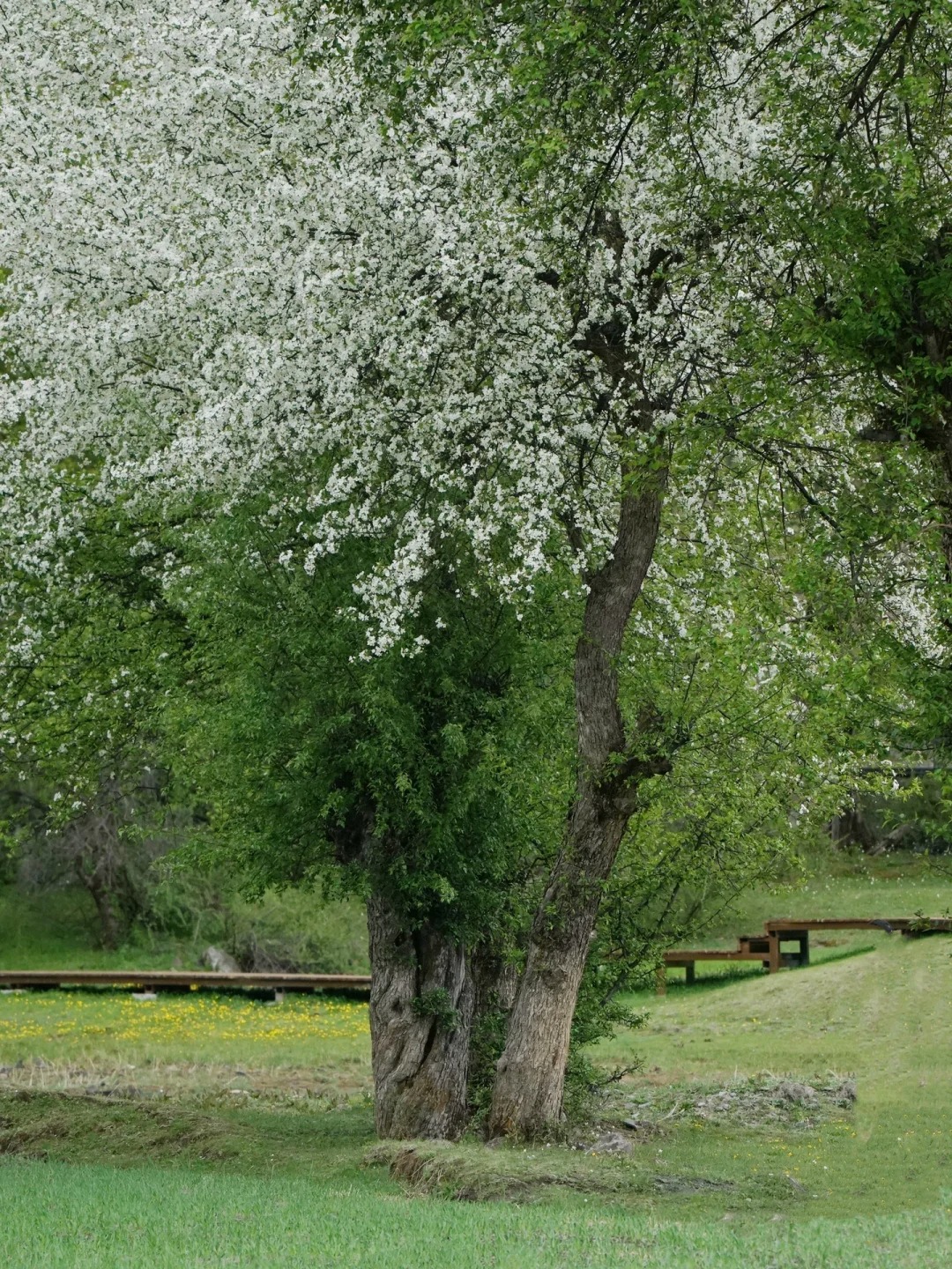 💰提吾村的俄色花所在的地方,有木栈道,周围是平坦的田野草地,出片很好看,这里是人气最高的打卡点,也是网红树所在地。