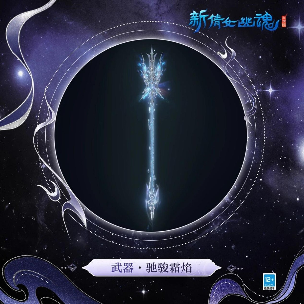武器外观驰骏霜焰也很“特别”,打破了常规刀剑形态,修长兵刃上萦绕着淡淡蓝焰,挥动时寒光与焰影交织,,颇有“白马银袍闯江湖”的既视感!