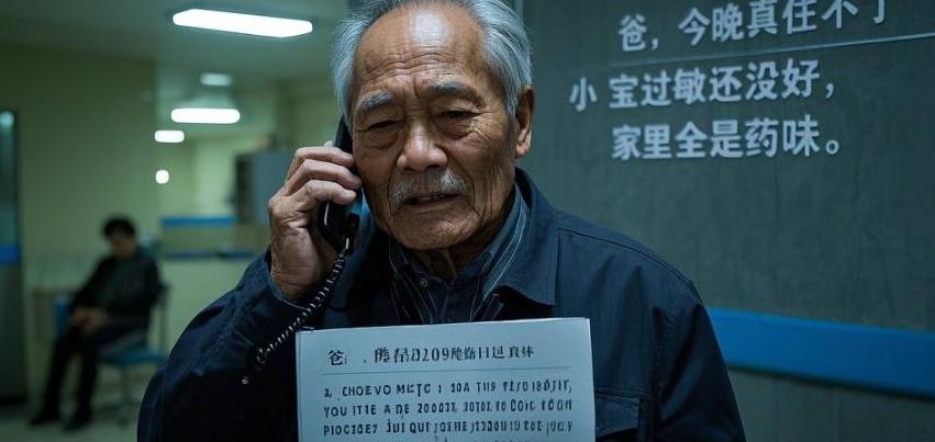 但更让他不知所措的是电话那头传来的声音:“爸,今晚真住不了,小宝过敏还没好,家里全是药味。”儿媳林芳的声音冷冷的,背景是孙子撕心裂肺的哭喊声。