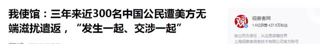 观察者网:2024年4月29日,《我使馆:三年来近300名中国公民遭美方无端滋扰遣返,“发生一起、交涉一起”》
