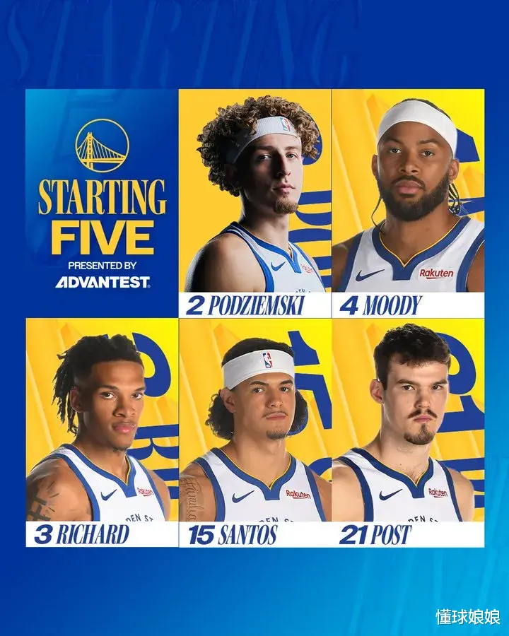 只能说确实山中无老虎啊……勇士这也是没办法,伤病名单一大串。他们今天的首发名单是👇
