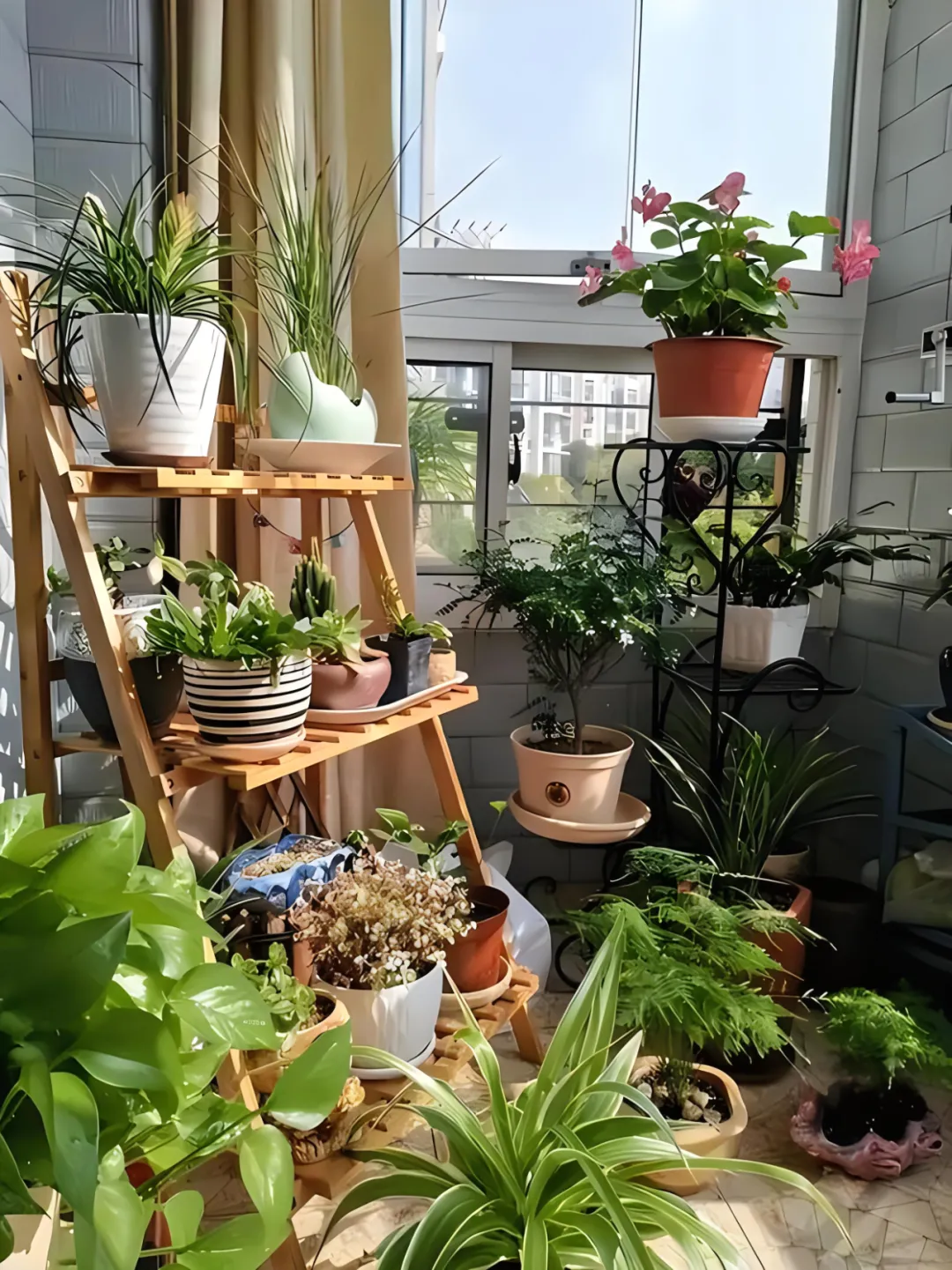 阳台上的绿植确实可以为家增添自然之美,养一些有象征意义的绿植,听说还能催发财气。