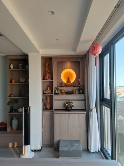 据说,佛像应该背靠实墙,面向开阔的区域,并置于明财位,这样才能确保家中风水的良好。