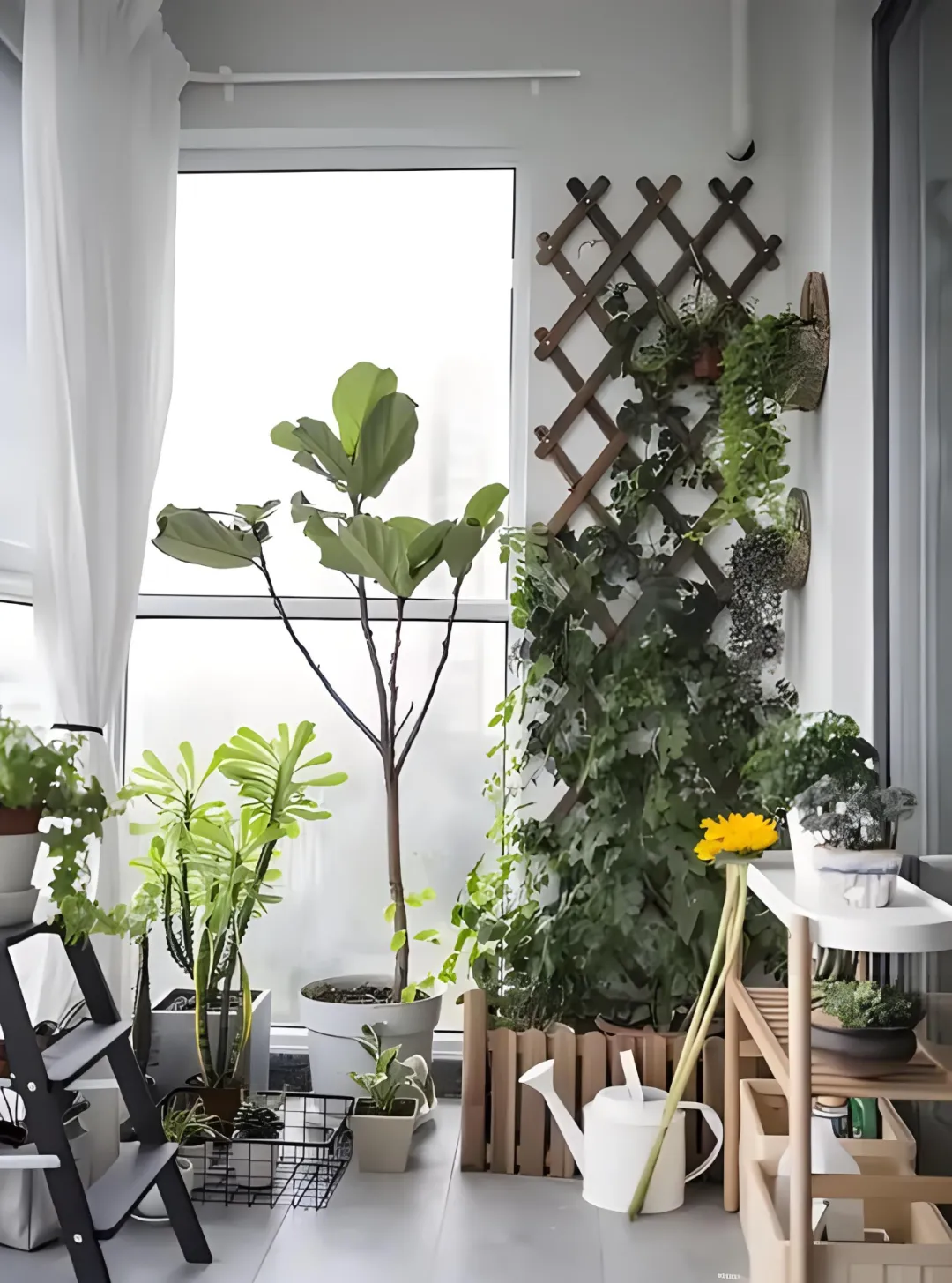 比如,有人在阳台上种了一株三角梅,结果两年后整个阳台都被挤爆了,室内光线被完全遮挡,变得非常昏暗,植物的形态也不够优美。