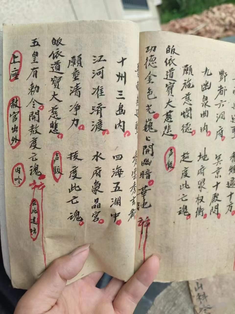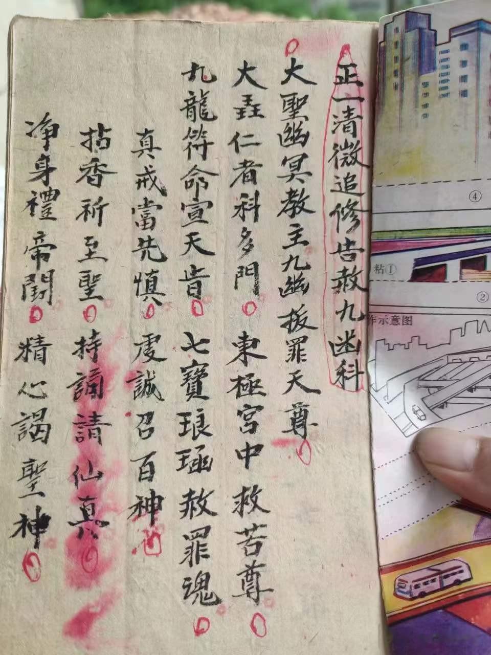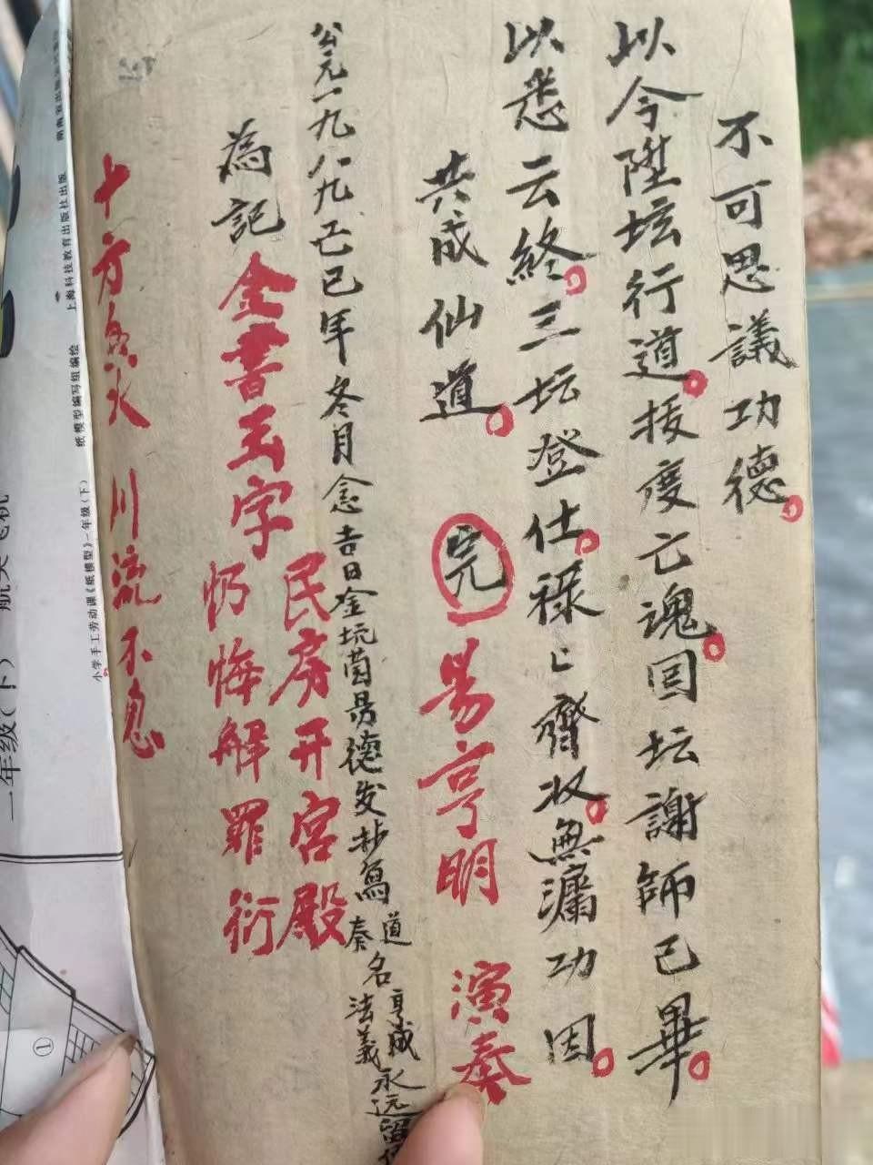 《正一清微追修告赦九幽科》为己巳年易德发老道长亲笔抄录的道教孤本,共十八个筒子页,内容完整且附有朱砂批注。此书融合正一道与清微派之精髓,专用于超度亡魂、破狱救苦的阴事斋醮。