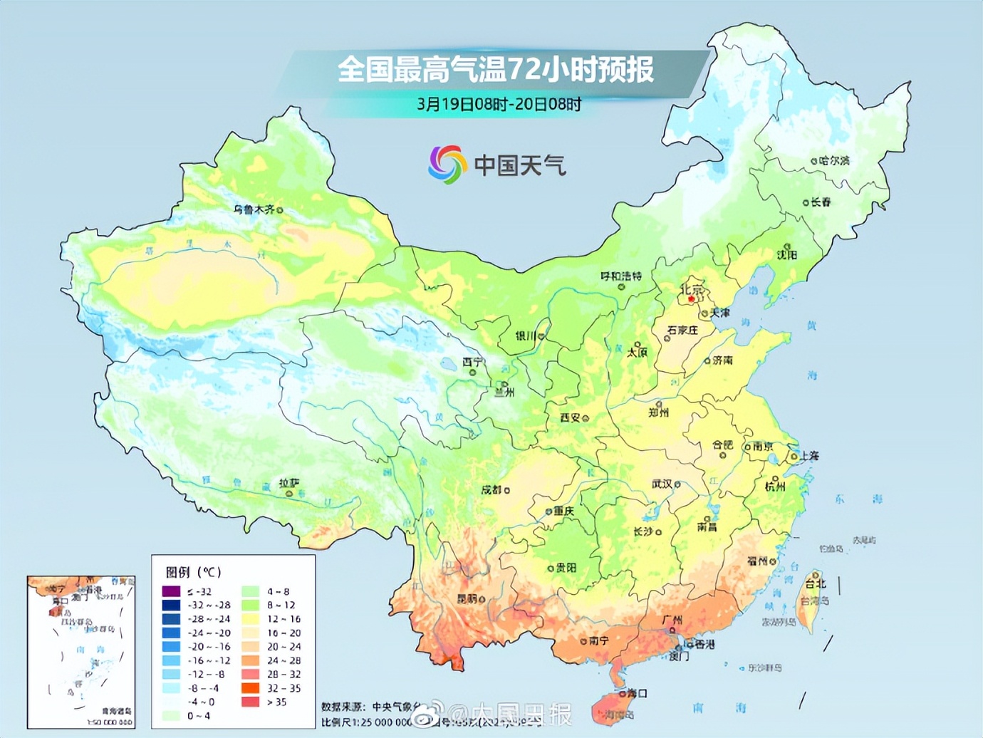 今天,华北、东北多地气温还将继续上升,最高气温10°C线或向北推进到内蒙古东部、黑龙江南部一带;