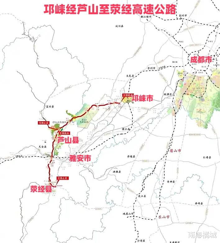 2024年12月30日,项目开工动员令在芦山吹响;2025年2月18日正式获批;7月27日,多个节点工程:TJ5标段芦山互通、芦山隧道进口支洞等率先动工建设;8月1日,TJ7标段白岩顶隧道进口进洞;8月4日,邛崃段首根桥梁桩基在孔明枢纽顺利浇筑。截至2025年11月,全线8个先期开工点全部启动,芦山隧道、钟山隧道、冯家山隧道、白岩顶隧道等控制性工程加速掘进,累计完成投资38亿元,占总投资14%,预计2028年底建成通车。目前,关于邛崃经芦山至荥经高速公路迎来了一个重大进展:邛崃经芦山至荥经高速公路项目两阶段施工图设计已正式获批。这一关键进展标志着项目将进入开工前的重要阶段,为全面开工建设打下基础。