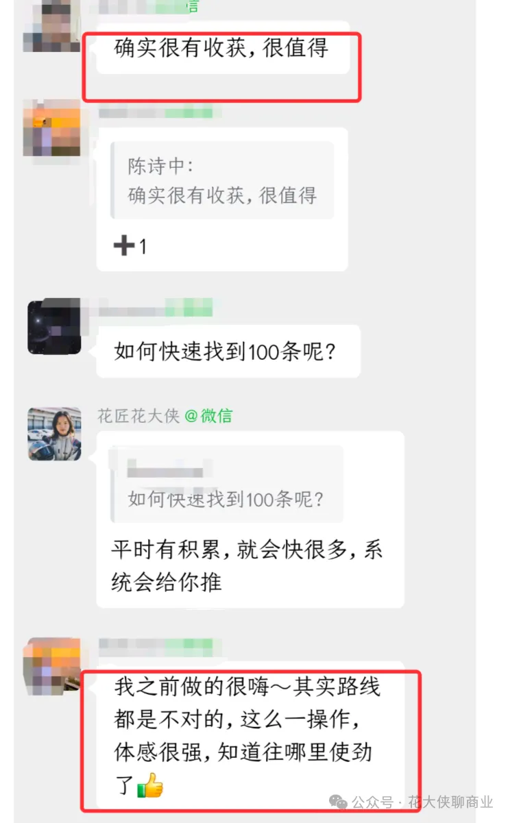 我在举办免费实战营收到的评价: