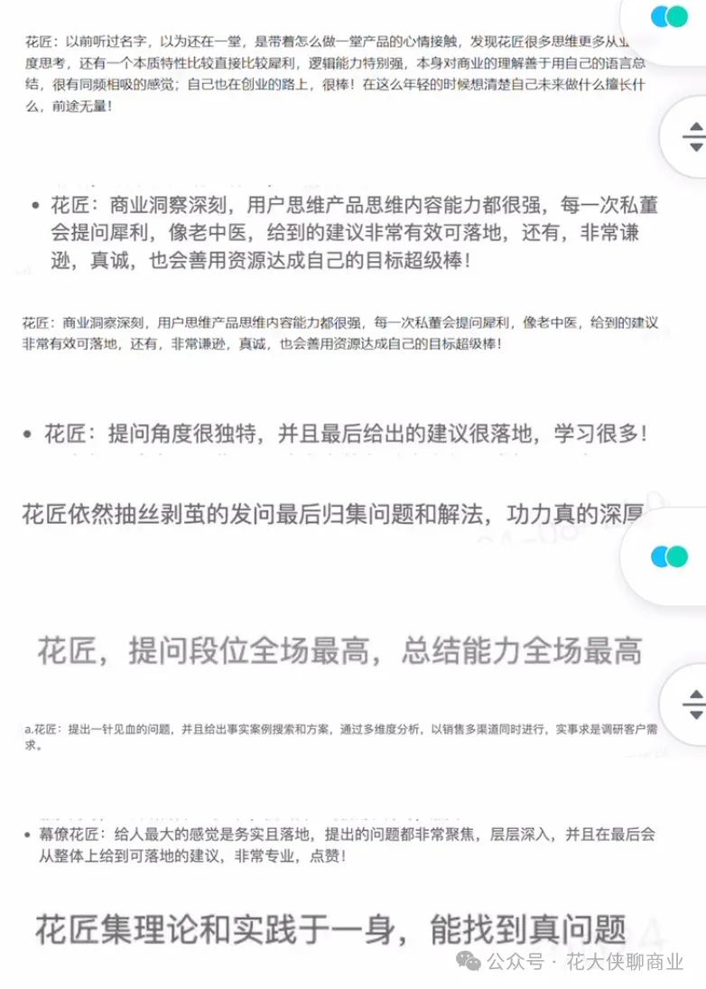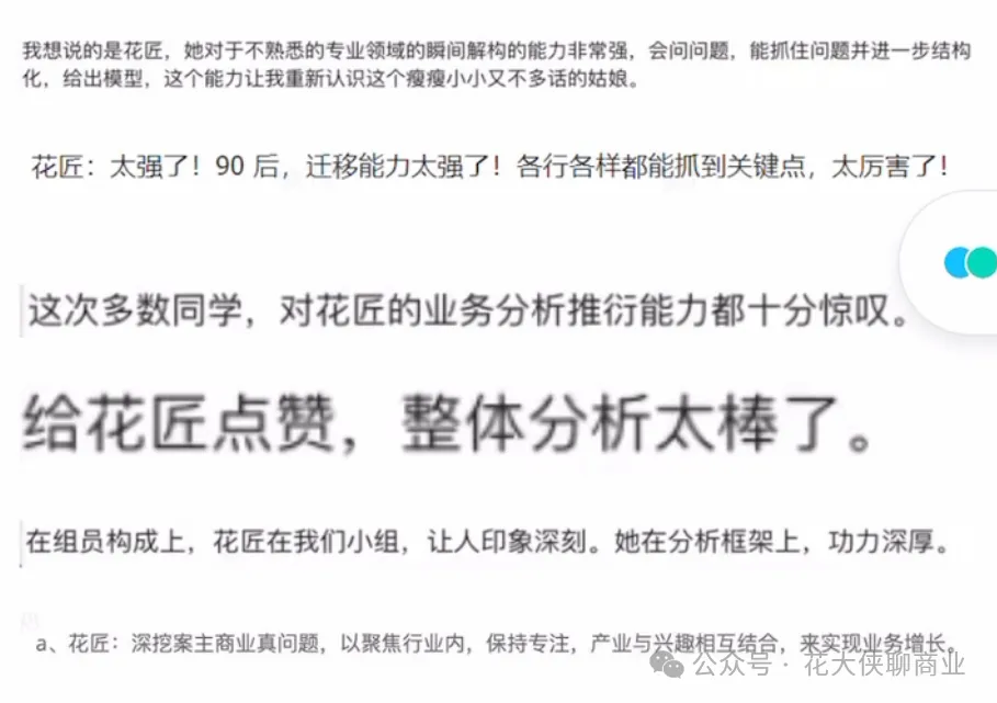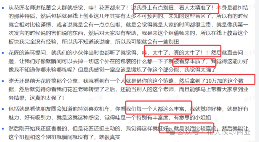 也多次被访谈的同学(苹果CHO、阿里P10高管、 多位营收过亿的老板)评价: