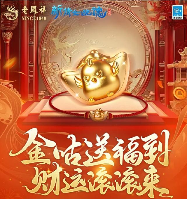 本次与老凤祥合作的金饰以倩女经典游戏元素咕咕鸡为灵感,巧妙将其融入金元宝之中。老凤祥的百年工艺完美还原咕咕鸡的憨态可掬。咕咕送福,不仅有招财纳福的吉祥寓意,也能带来吉星高照!每一份「财运咕咕来」招财手饰都凝聚着老凤祥的錾刻工艺与《新倩女幽魂》对玩家的祝福。这一次,让老凤祥的璀璨金饰,让心意具象,让祝福永存。