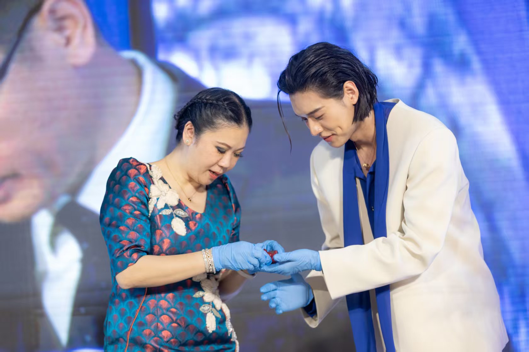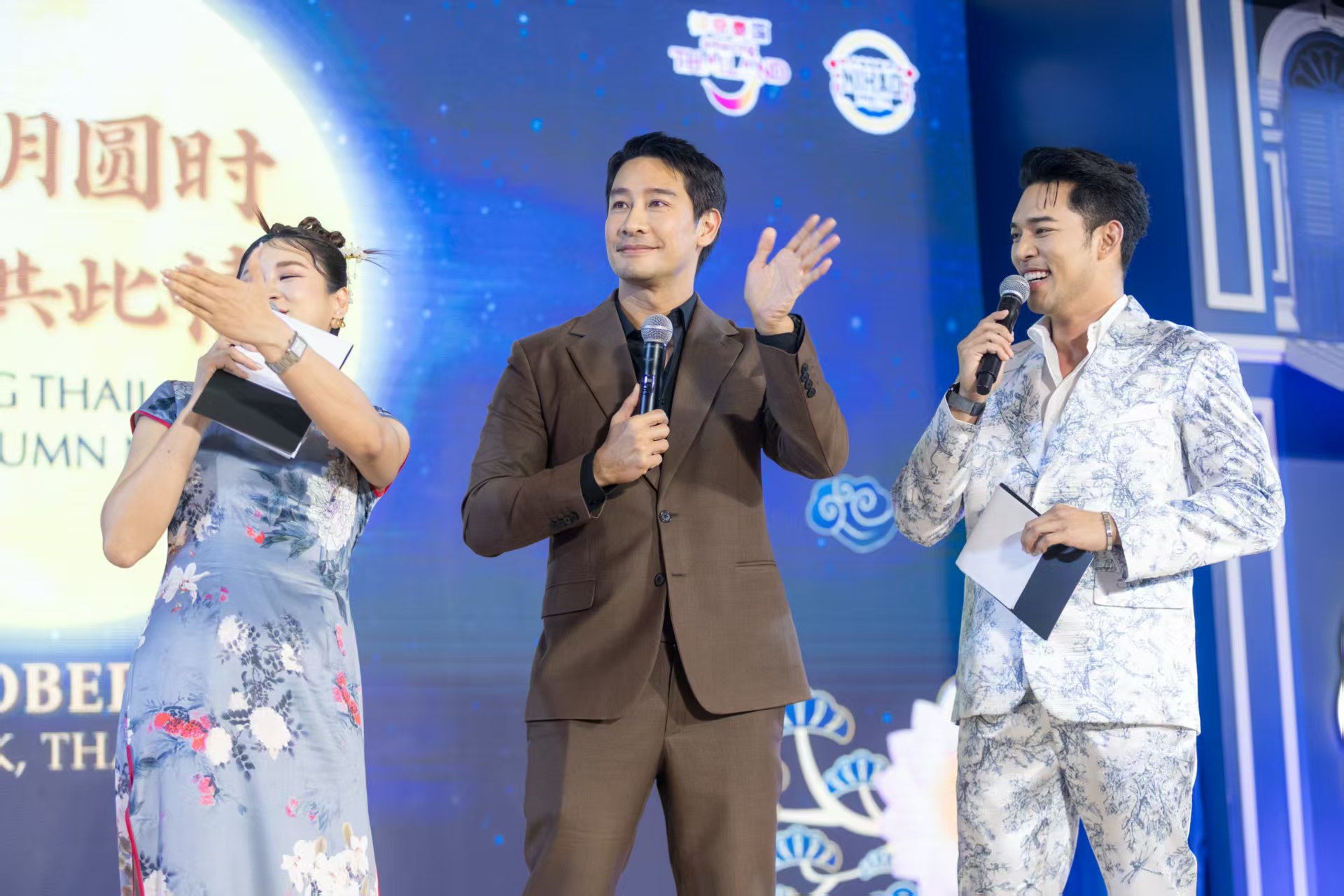 期间,泰国知名演员Pong(纳瓦·君拉塔纳拉)分享了自己在旅游与中泰文化交流方面的独特体验;而超人气男星Billkin(普提蓬·阿萨拉塔纳功) 则带来特别表演并送上中秋祝福。此外,两位特邀嘉宾还与旅游与体育部部长阿塔功先生、大使馆文化参赞杨晓龙先生、旅游与体育部常务秘书纳塔莉娅·塔威翁女士,以及泰国国家旅游局局长塔帕妮·吉娅蒂沛汶女士一同亲手制作“吉祥月饼”,为中秋庆典增添了浓厚的互动感和节日气氛。