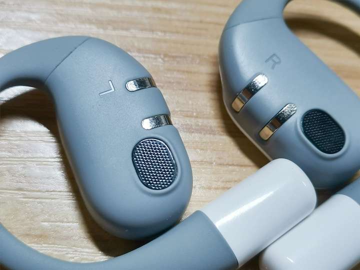 耳机表面覆盖着亲肤液态硅胶材质,摸起来柔软不滑手,戴上时像贴了块温软的橡胶,而且喇叭位置刚好能对准耳洞,不需要刻意调整就能贴合,而且对戴眼镜的用户也非常的友好。